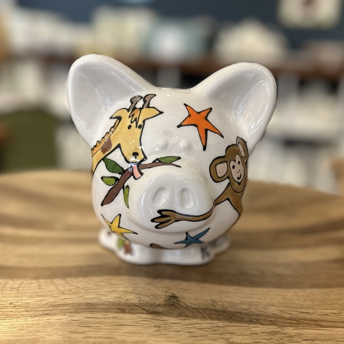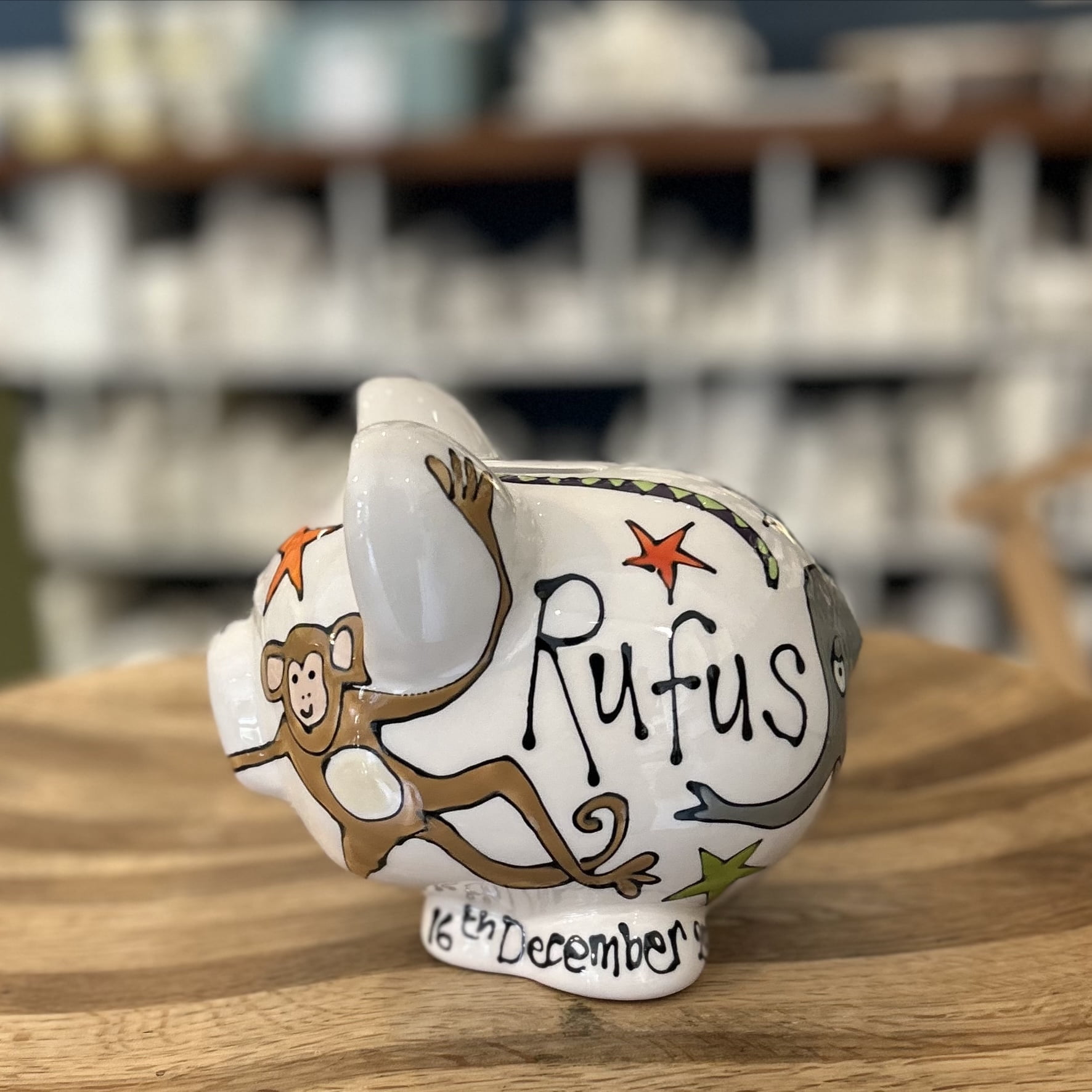 You have chosen a small piggy bank to personalise, which measures H13.3cm x L15cm x W10.8cm. This piggy bank would make a perfect birth or christening gift for a little boy or little girl, it would sit beautifully on a shelf or sideboard in a child’s bedroom for them to save for the future. Alternatively, it would make a great gift for a leaving present or new home.