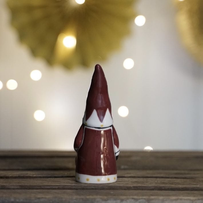 These friendly little Nordic Santas decorated with a deep red zigzag design would look perfect on a festive mantle piece or window sill.
