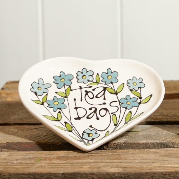 This hand-painted tea-bag dish is made from earthenware ceramic and decorated with a pretty design of forget-me-not flowers.