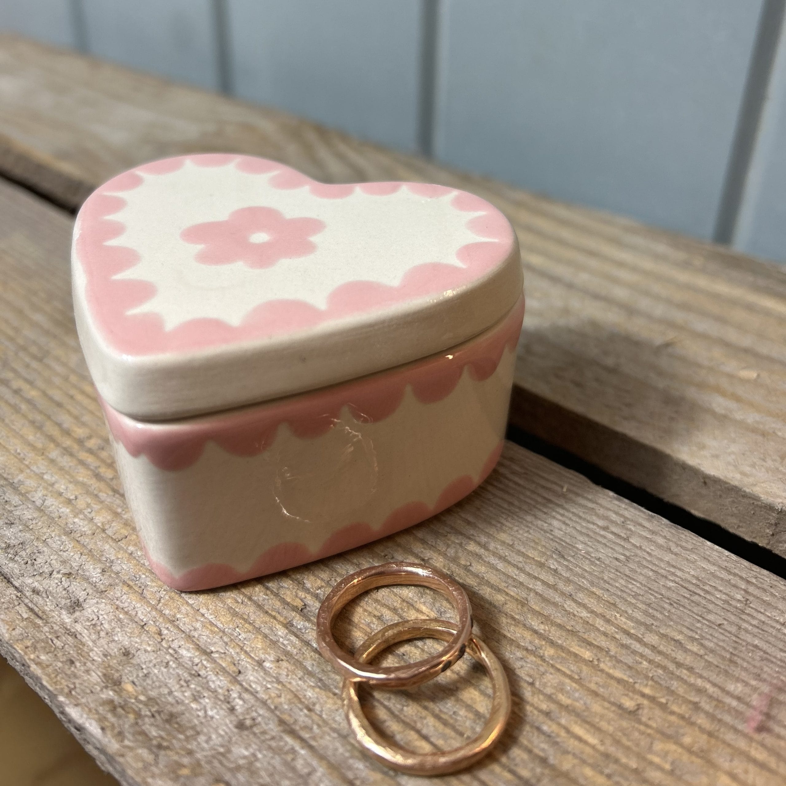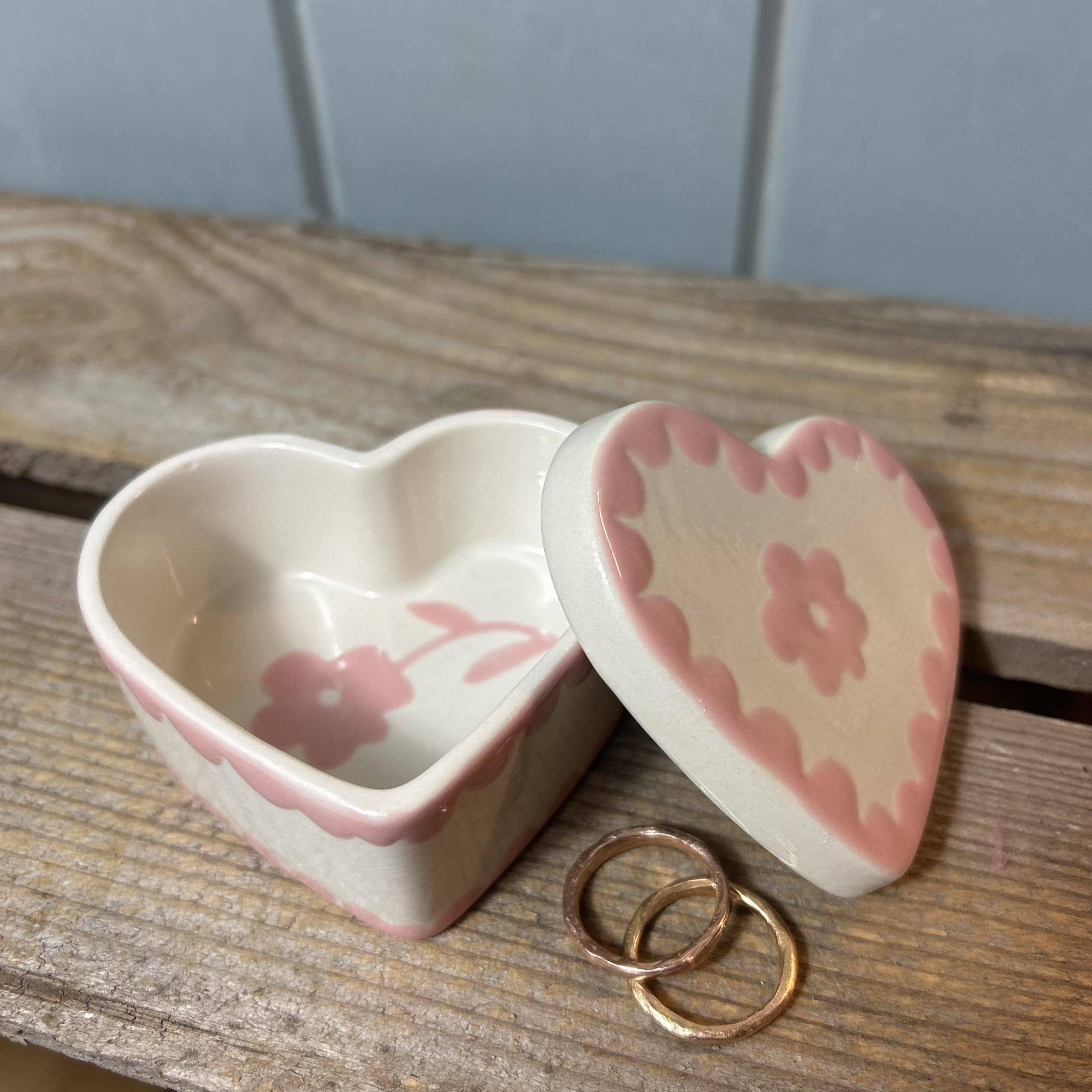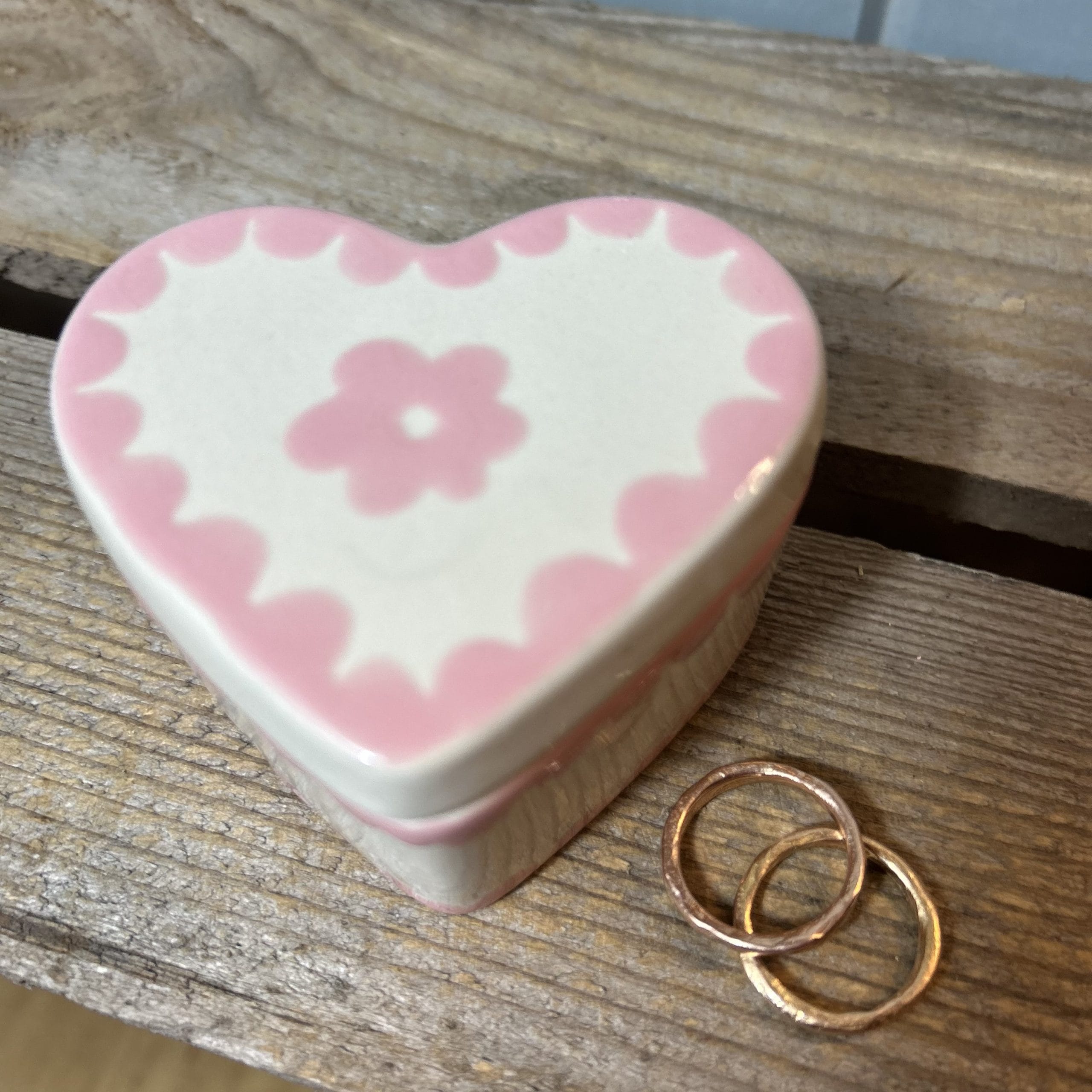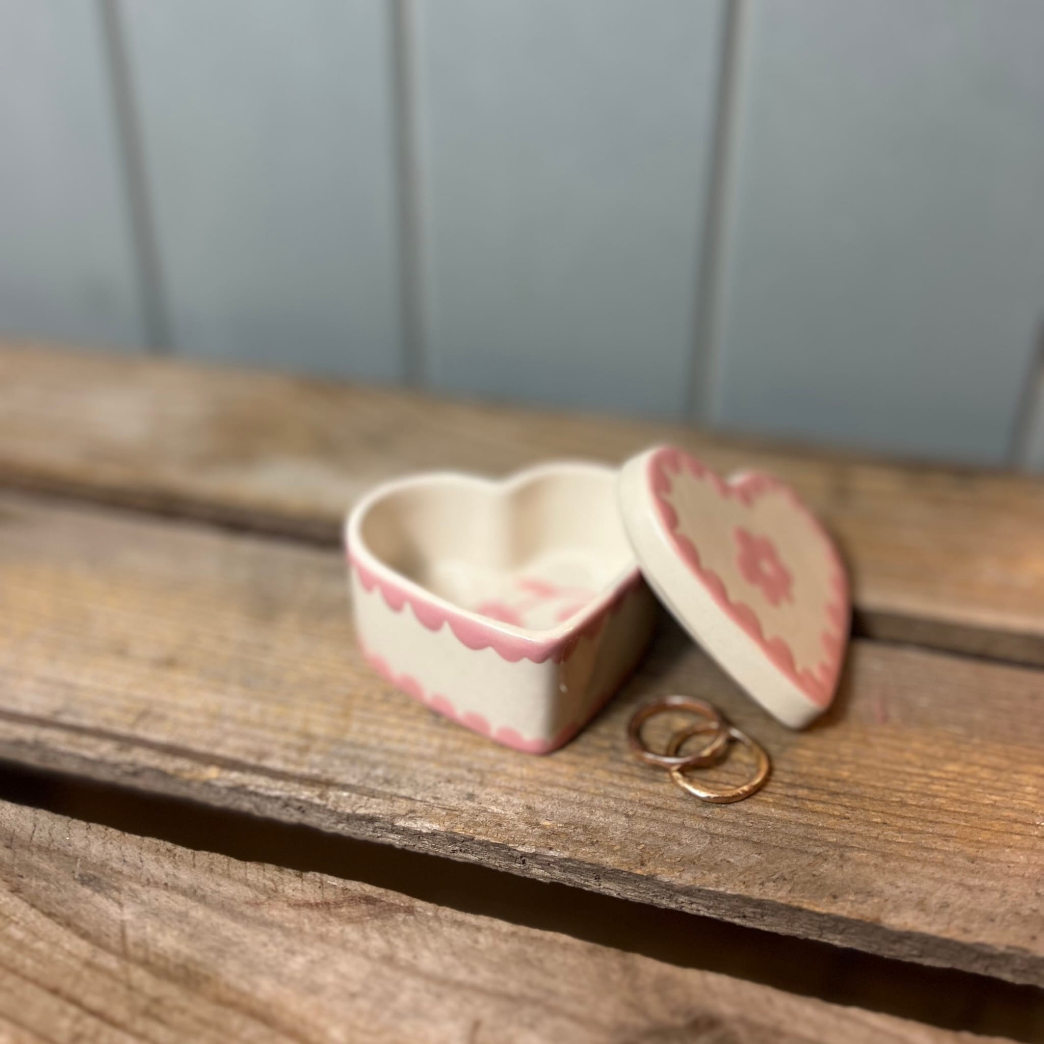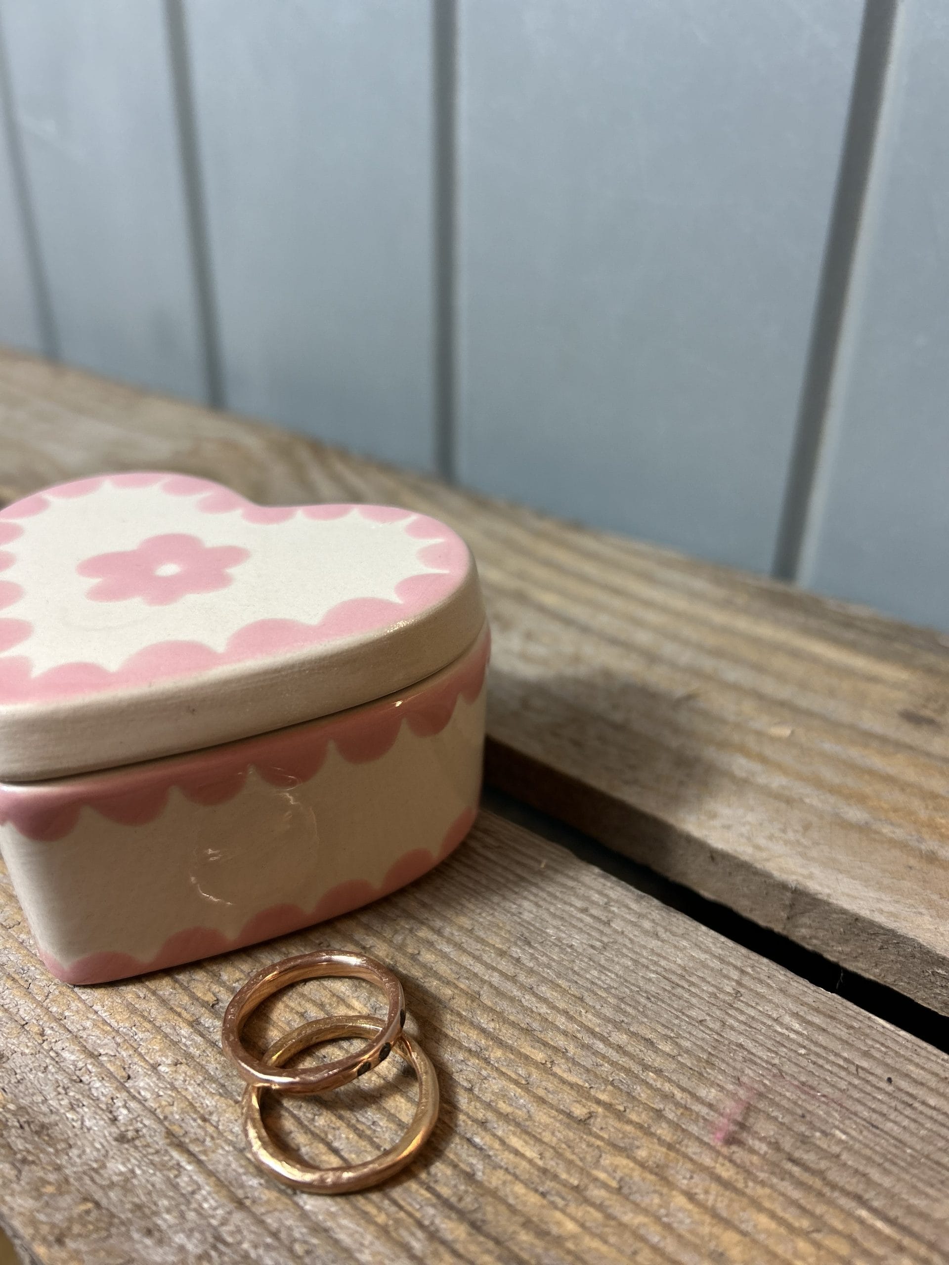 This small heart shaped trinket box is perfect for beside the bed or on a dressing table to put rings or earrings in.
